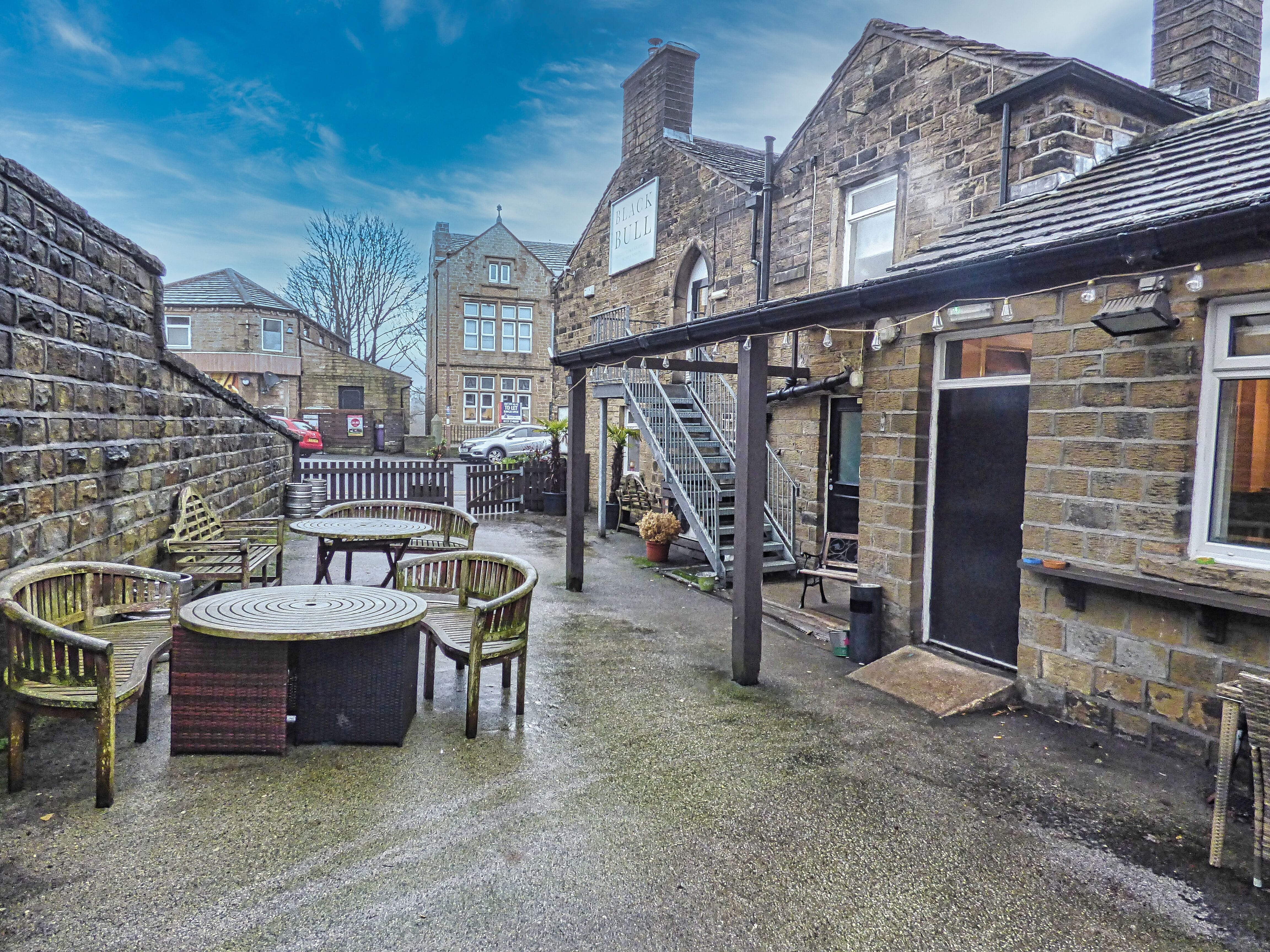 The Black bull is located just off a busy road in a village location, there are a couple of shops and local amenities, plenty of mixed housing.