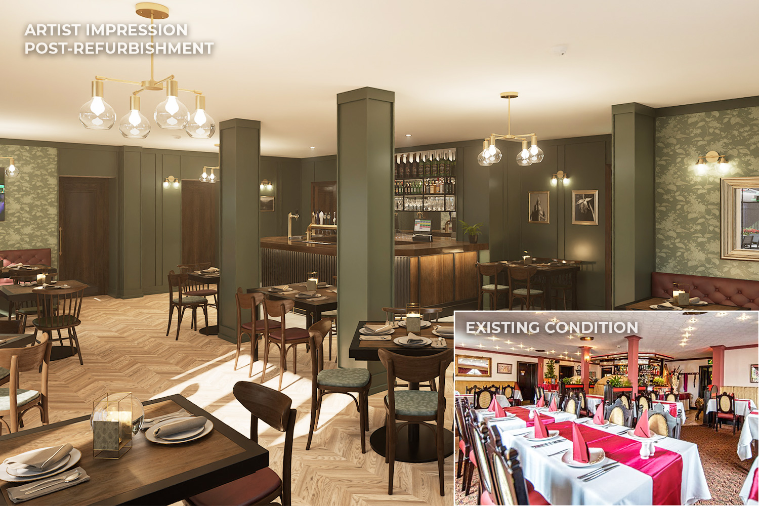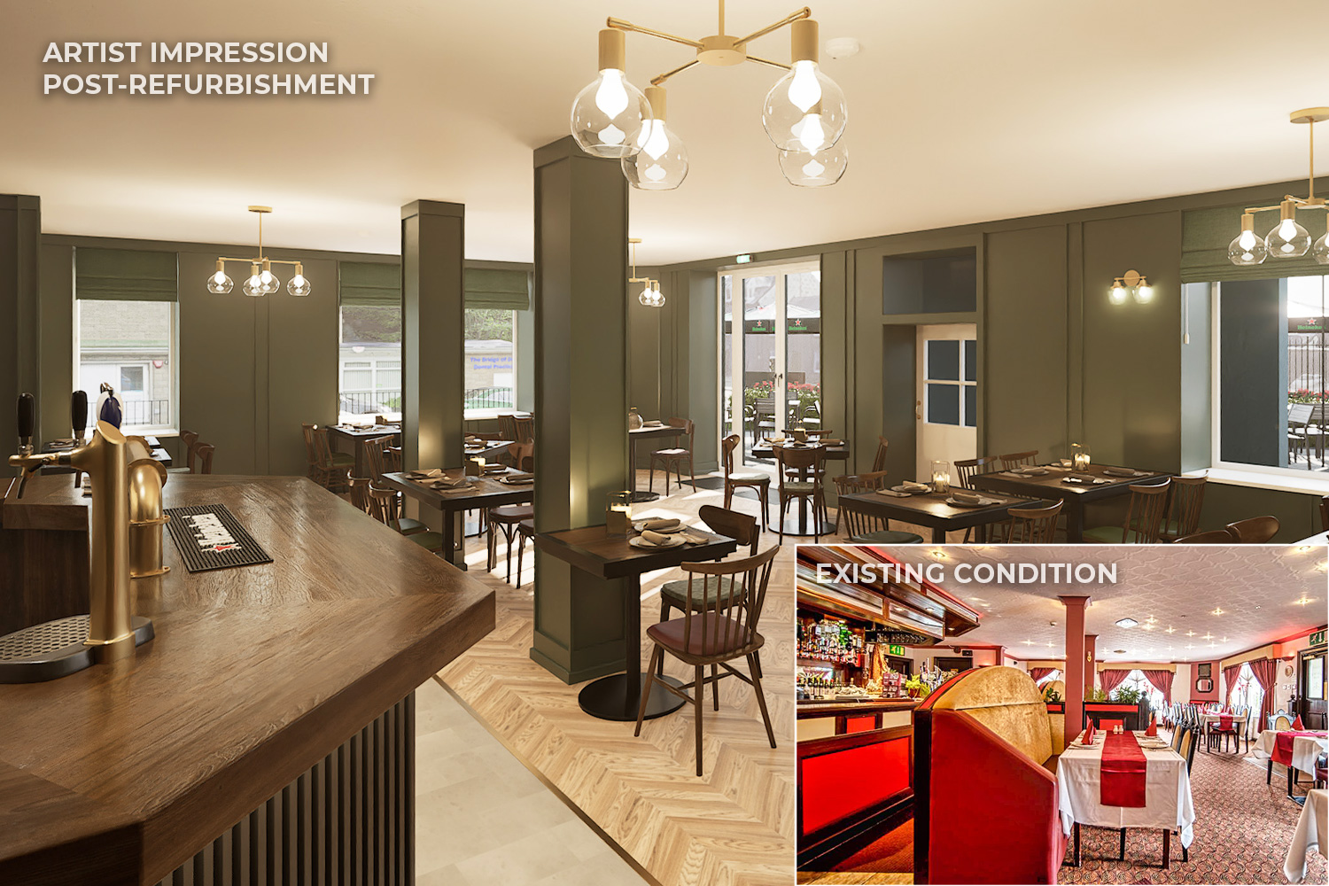 The pub’s trading areas and facilities post-refurbishment will include: