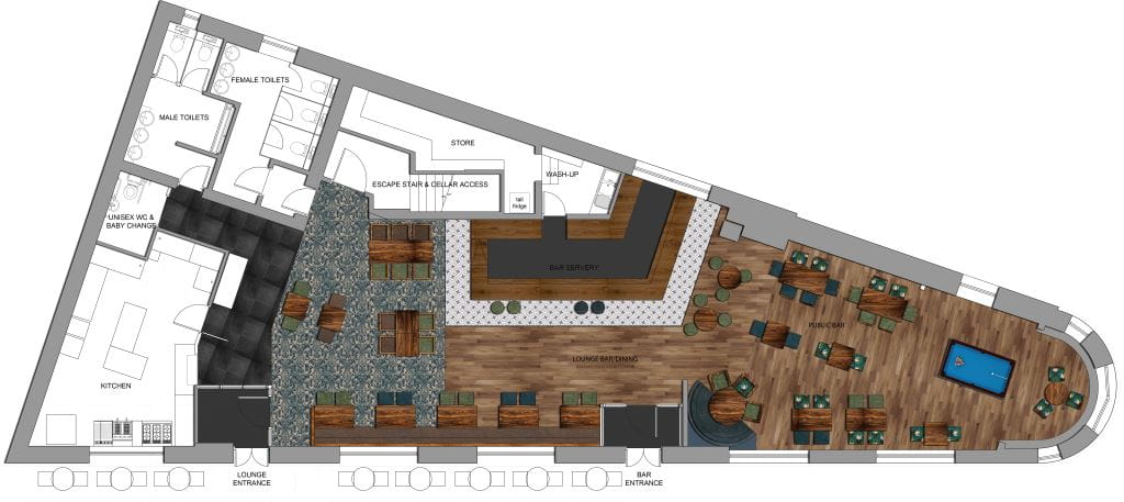 The pub’s trading area and facilities post refurbishment will be: