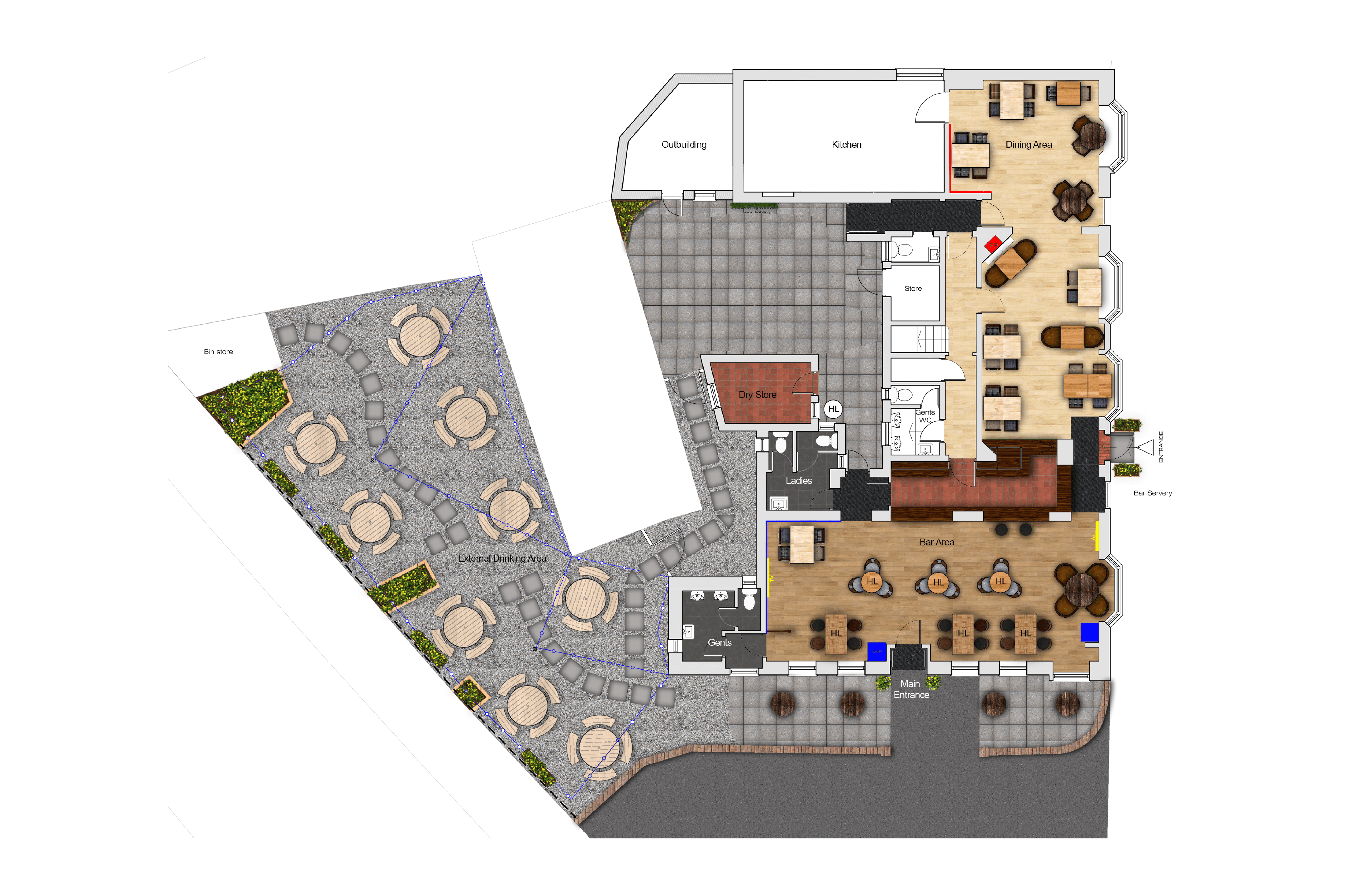 The pub’s trading area and facilities post-refurbishment will include: