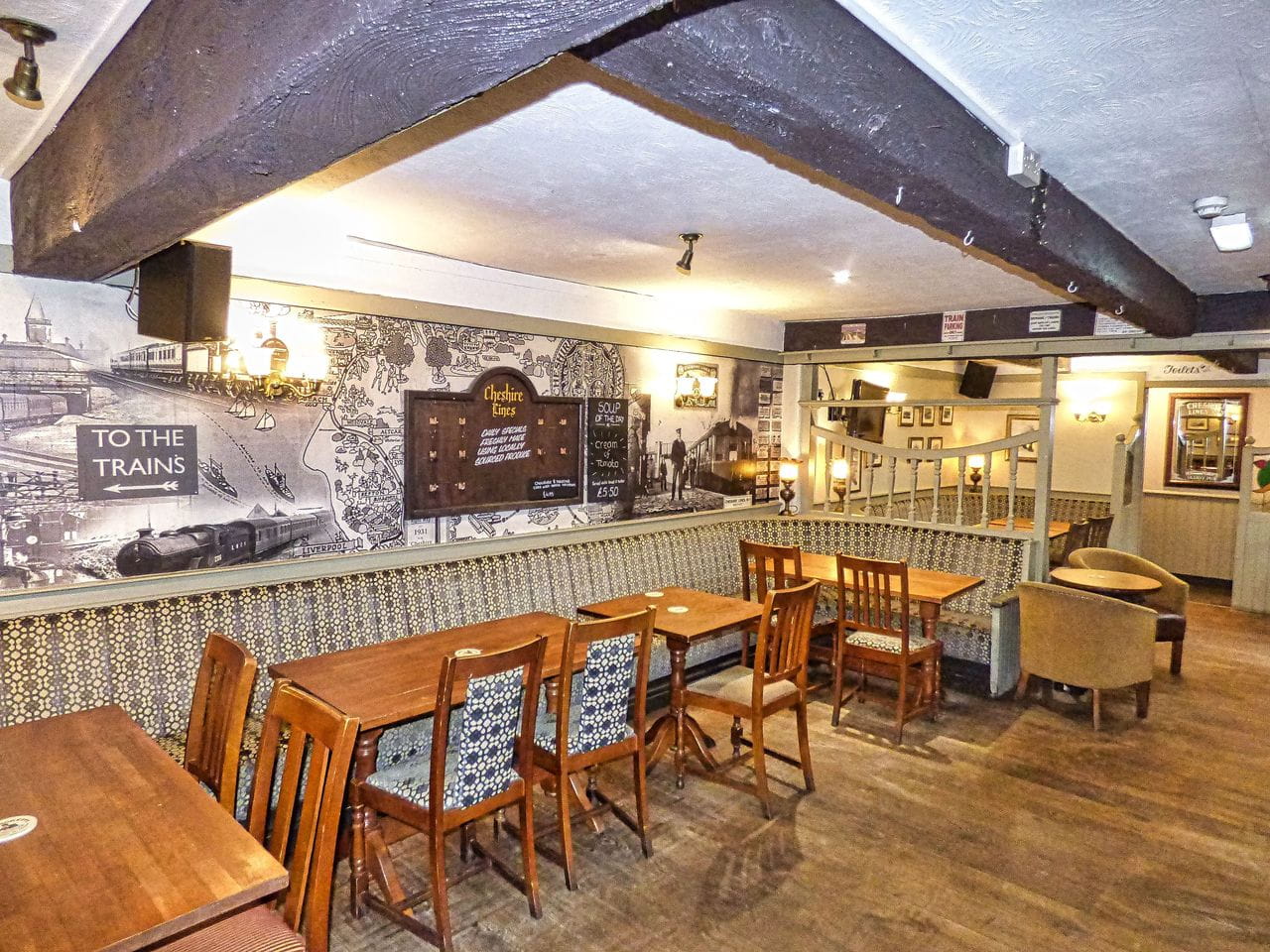 The Cheshire Lines has two great outside trading areas, one to the front and one to the rear, the one at the rear is secured which is ideal for families to relax with their children while enjoying a drink and some food.