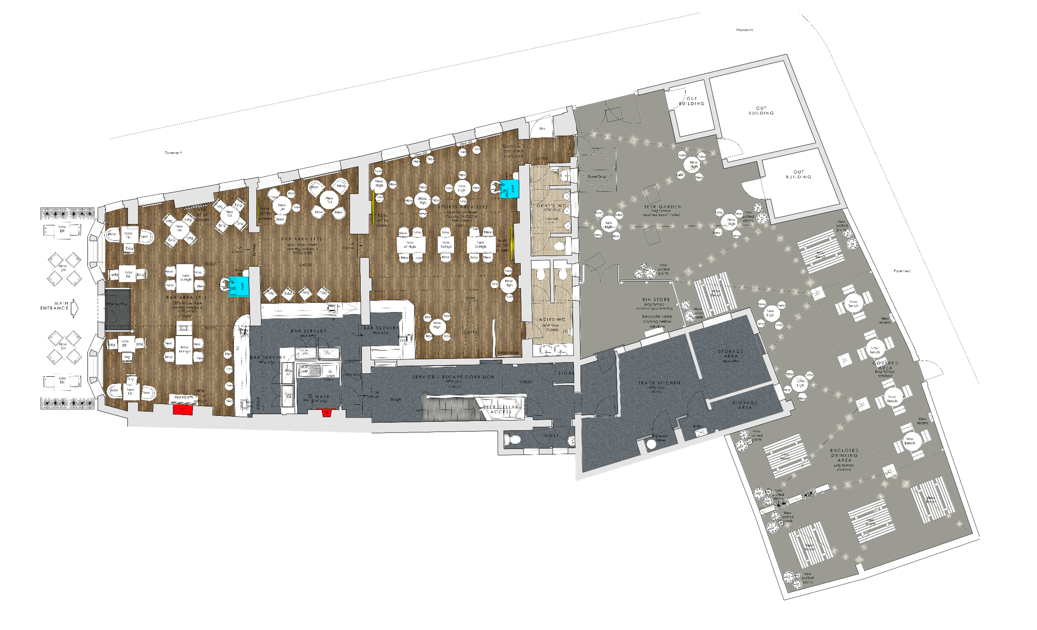 The pubs trading area and facilities post refurbishment will be: