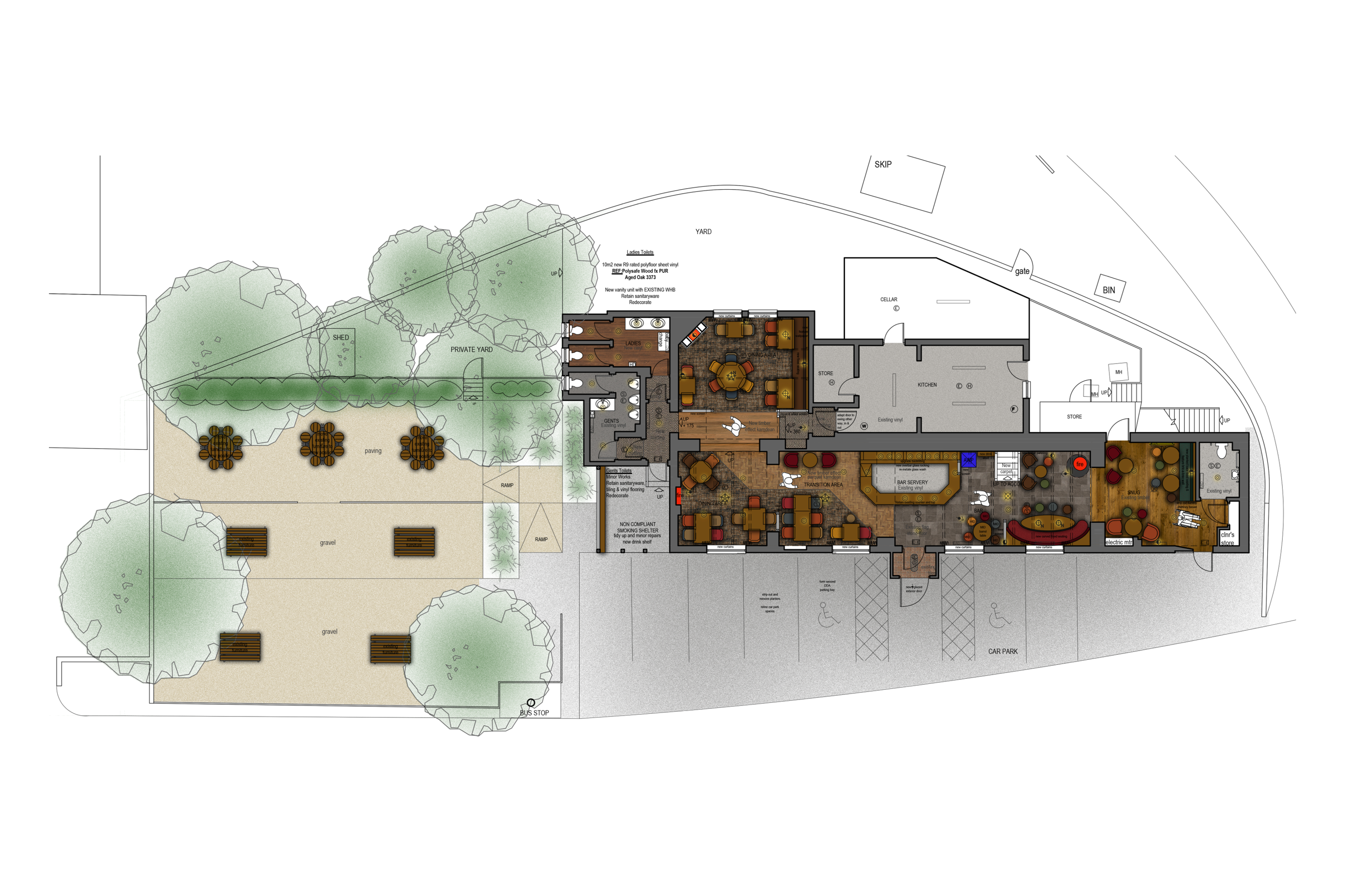 The pub’s trading area and facilities post refurbishment will be: