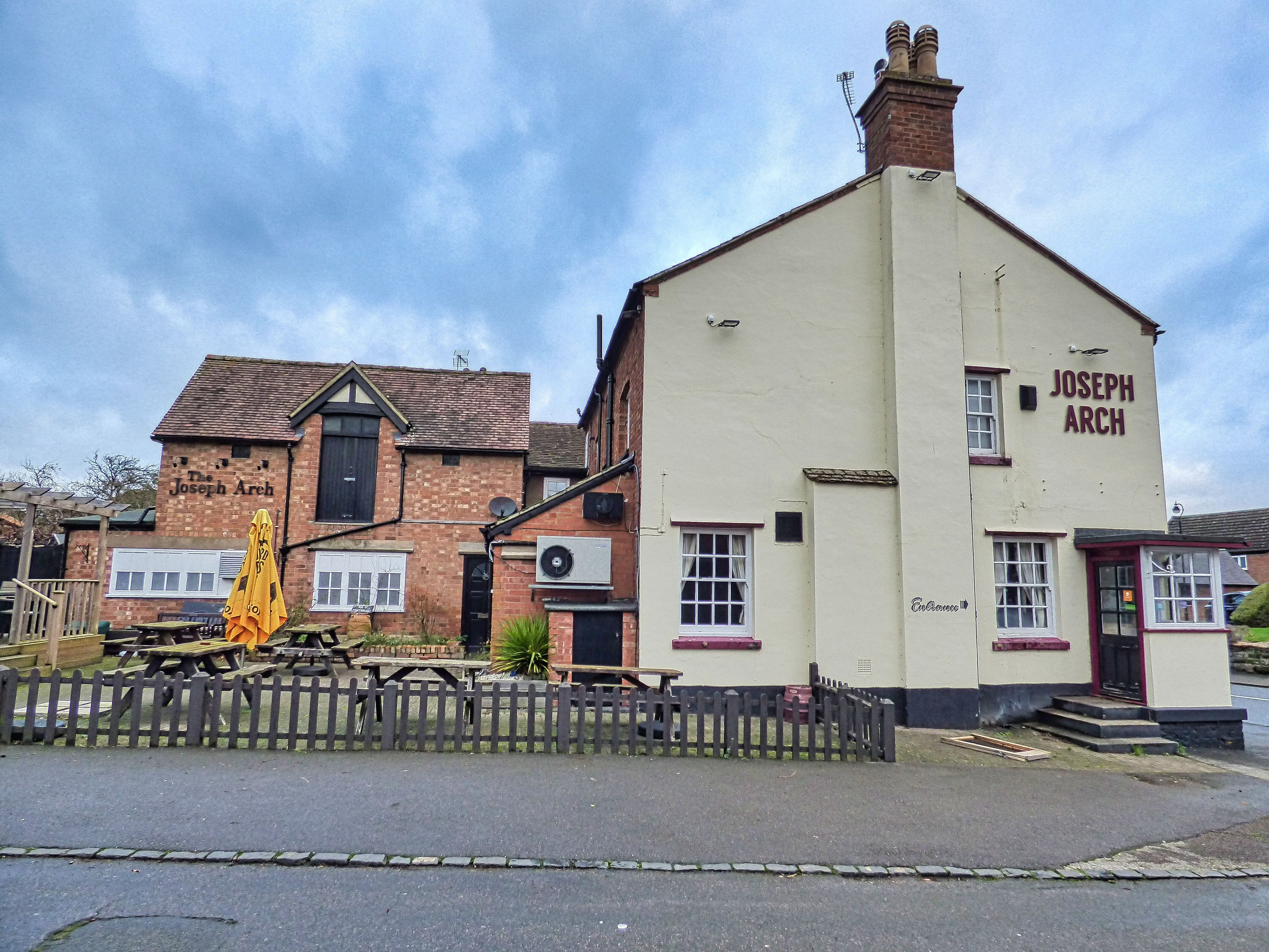 The Joseph Arch is located in the village of Barford in the county of Warwickshire near Stratford. The pub is surrounded by a village shop and post office and mixed housing.