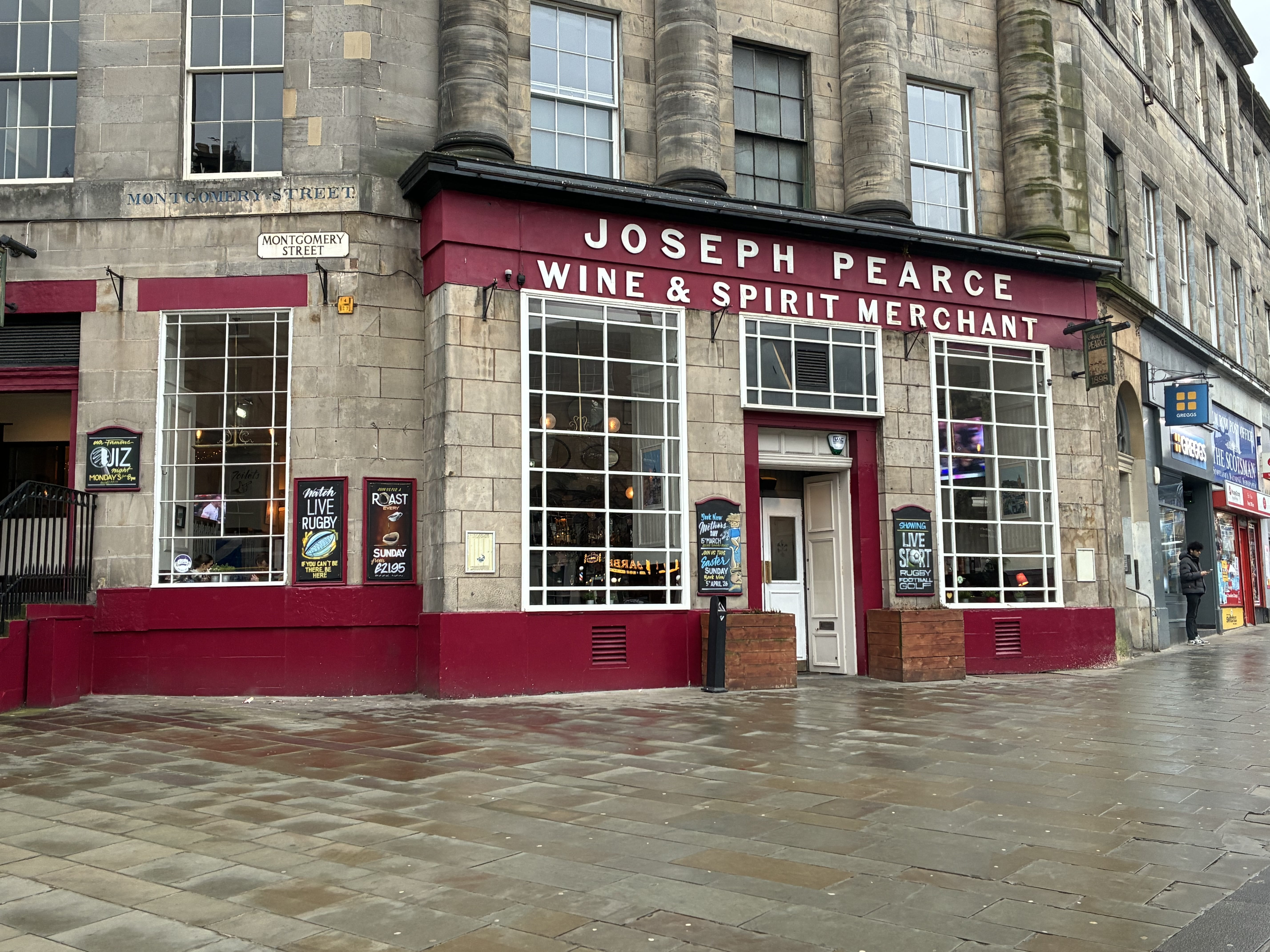 Pearce’s Bar is located in the city of Edinburgh, close to the Edinburgh Playhouse and Waverley Station. The pub is surrounded by shops, food and retails outlets and mixed housing.
