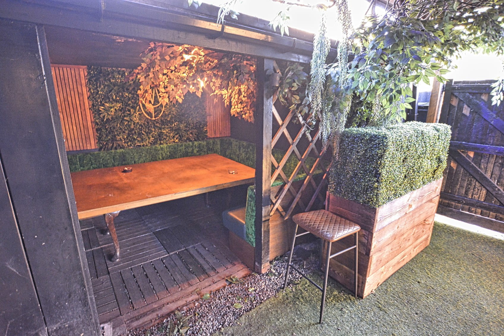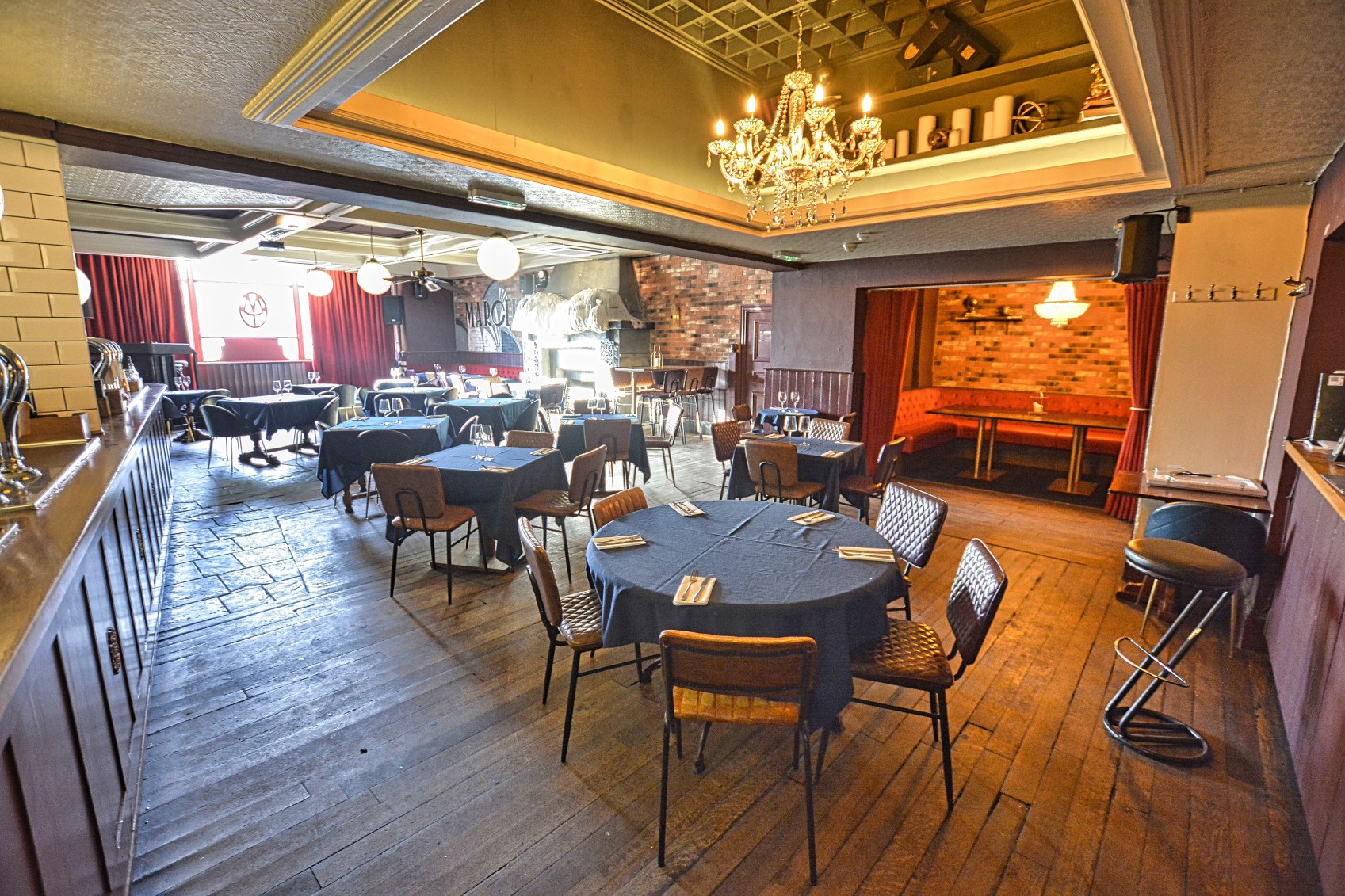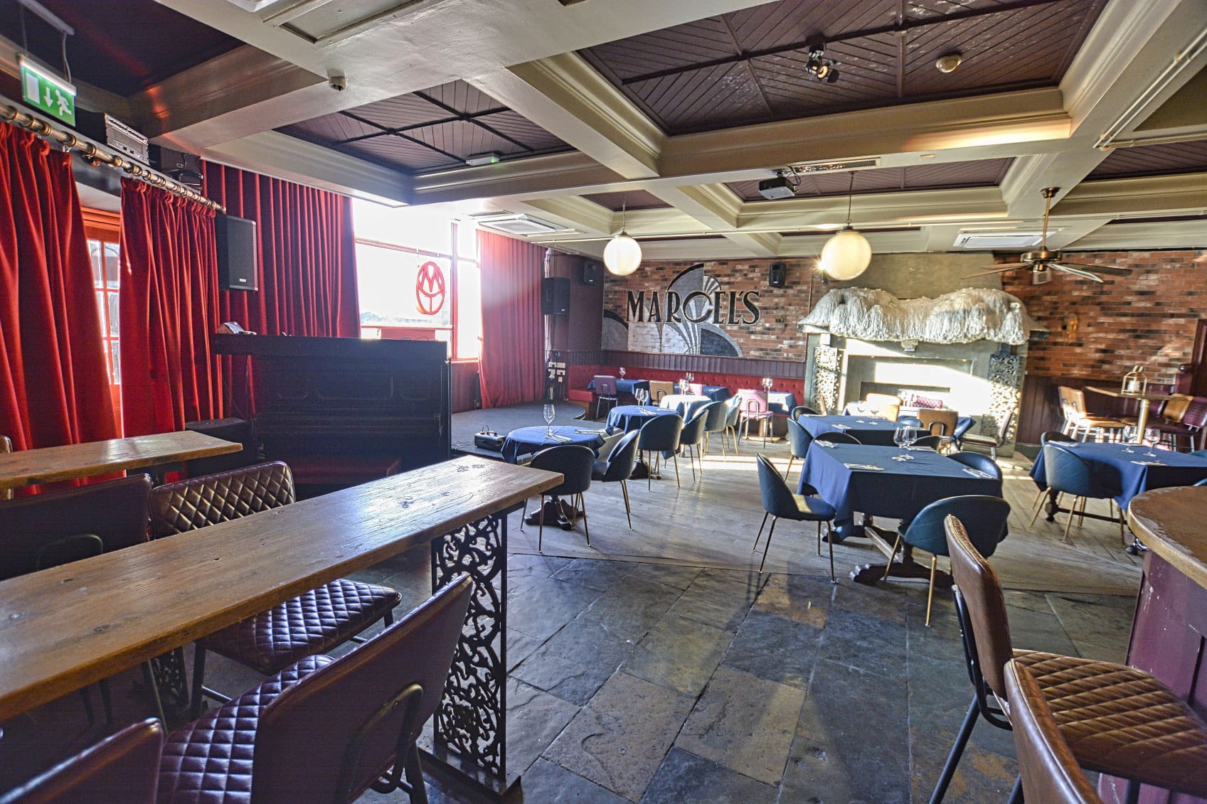 Thekaa has a great open drinking and dining space with a secret covered courtyard. A large/oversized open fire with multiple years worth of melted candle wax covering to bring a rustic and classic feel.