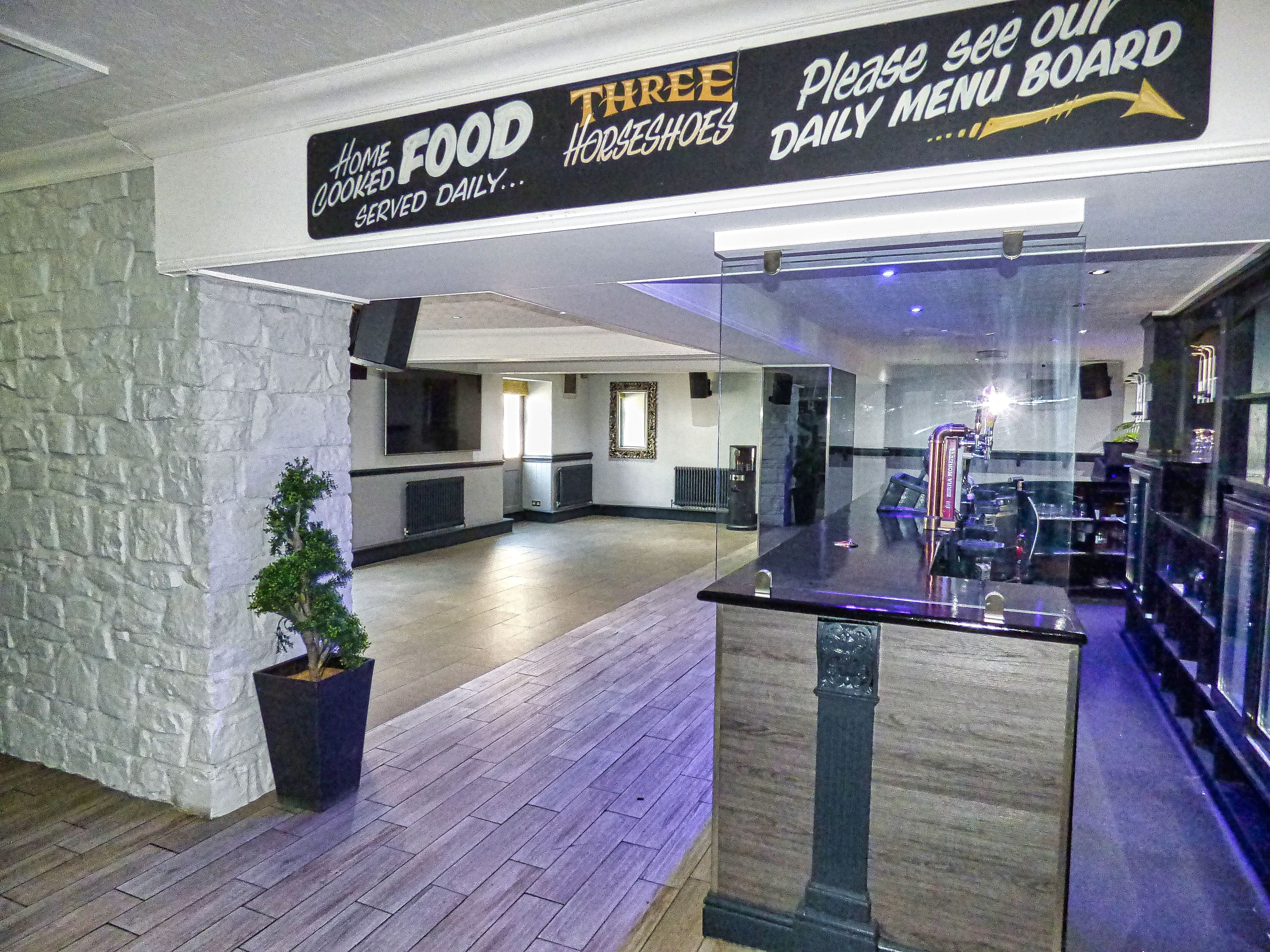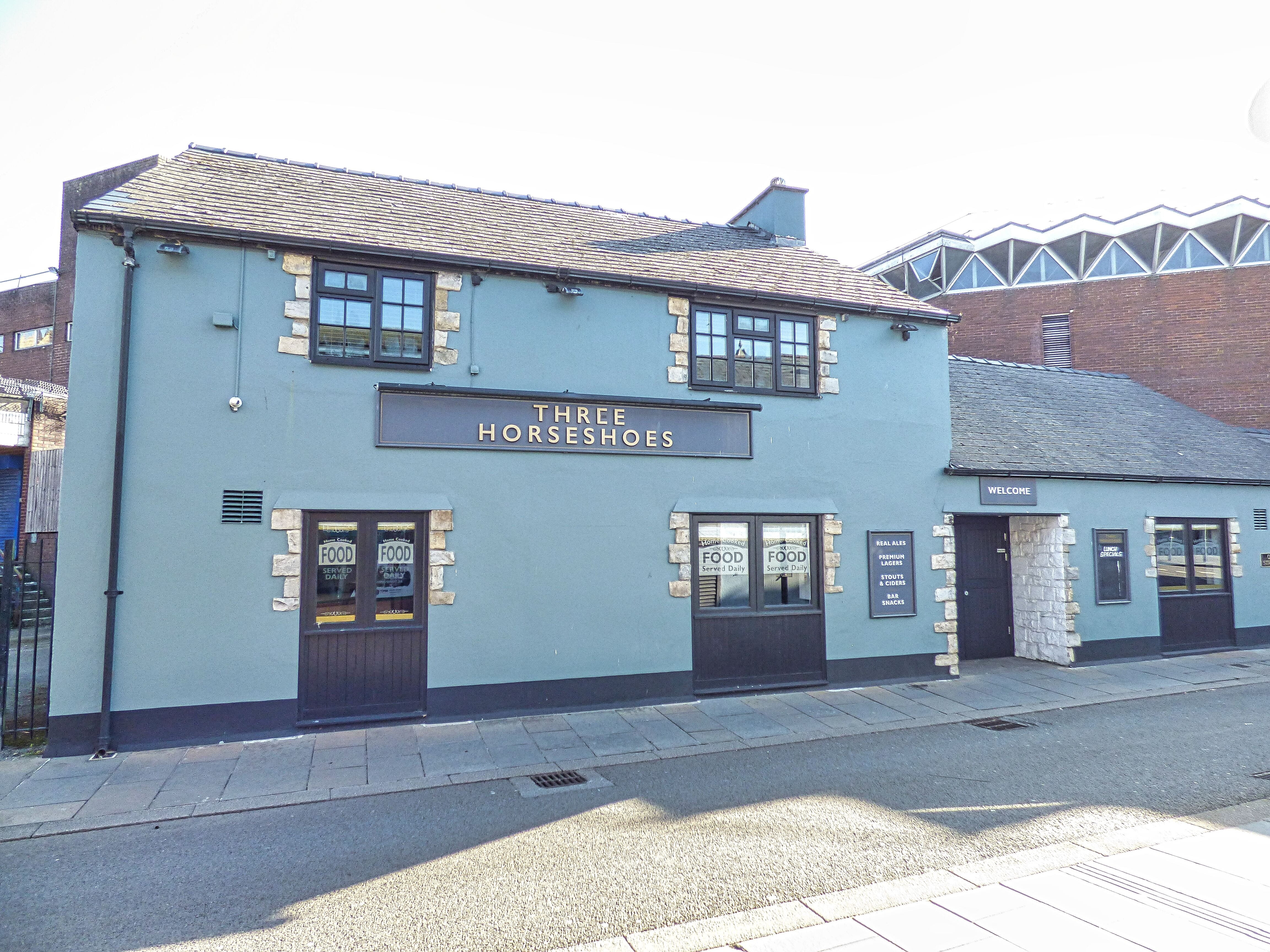 The Three Horseshoes is located in the town centre of Bridgend. The pub is surrounded by shops, food and retails outlets and mixed housing.