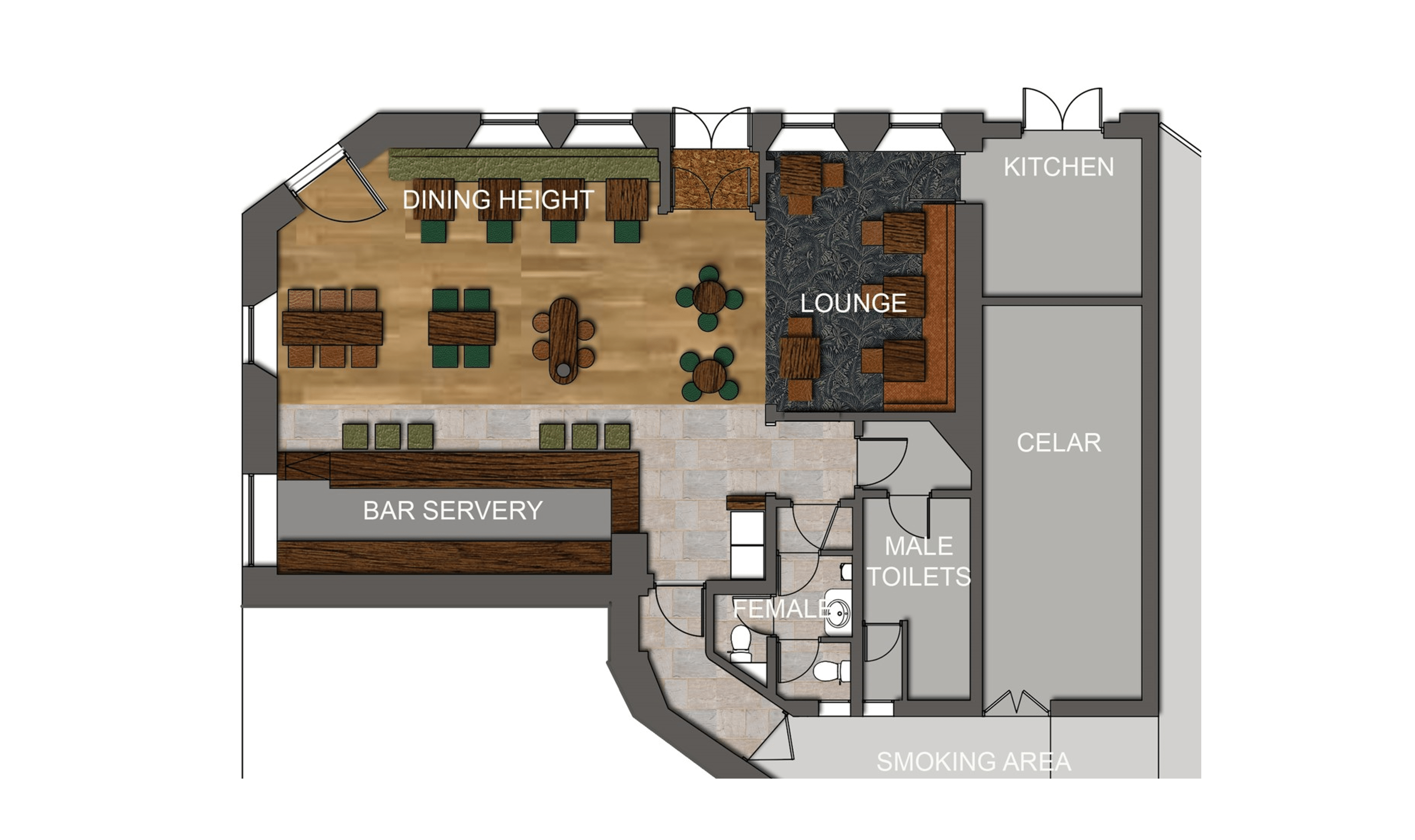 The pubs trading area and facilities post refurbishment will be: